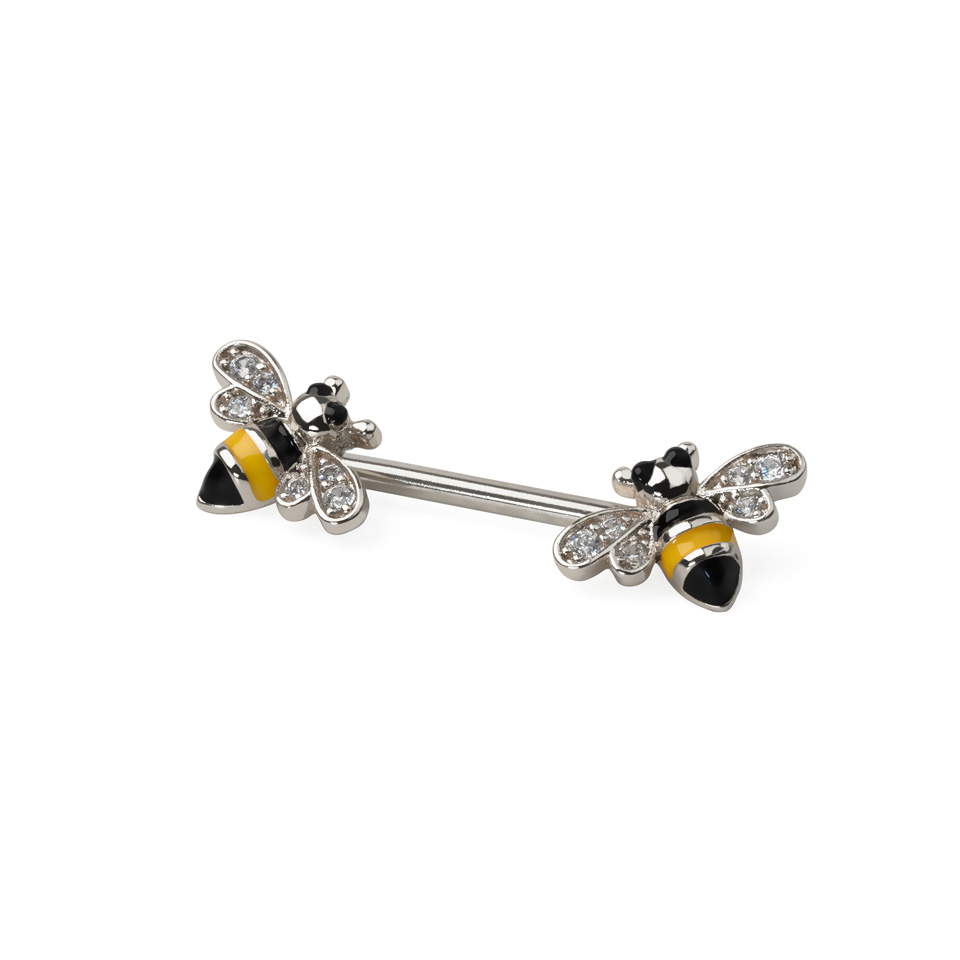 Meil on ilus pakkumine, kui otsid oma rinnanibude augustamiseks kõige unikaalsemat disaini. Ehte koosneb 14 mm sirgest barbellist, kuid kantav pikkus võib varieeruda, arvestades mesilaste omavahelist vahemaad.