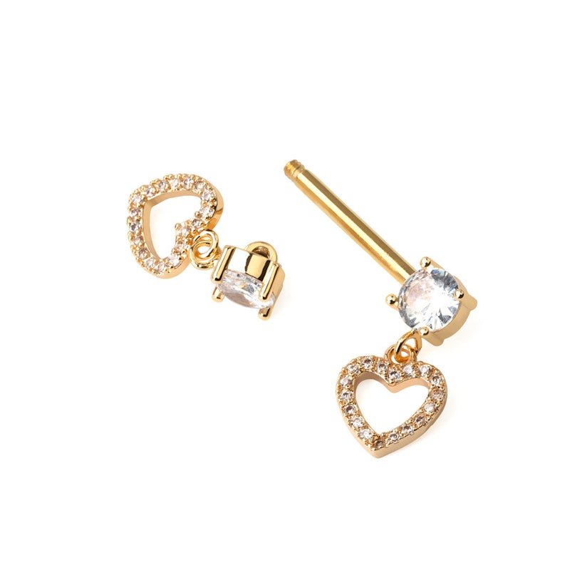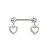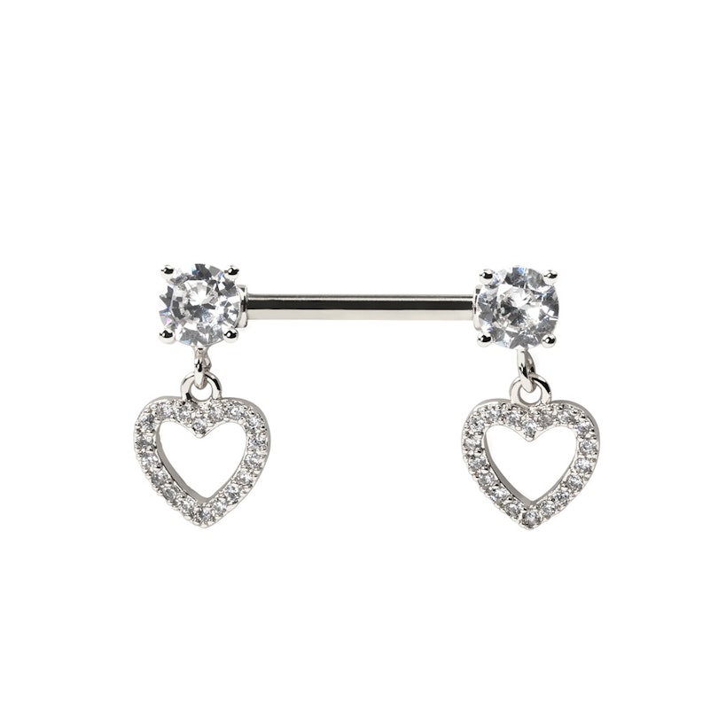 Selle imelise nibu barbelli otstes on tsirkooniumi kivid, mille küljes ripub lõbus kivikestega südamekujuline ripats.