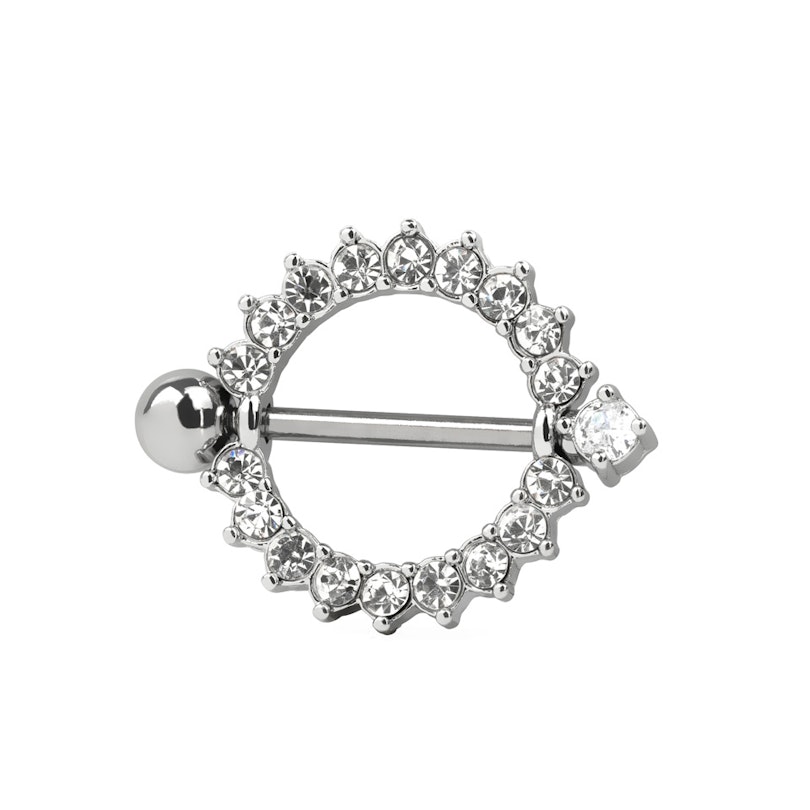 Sellel kaunil rinnanibu augustusehtel on elegantne kilp, mis on täielikult täis läbipaistvaid kive, mis näevad välja nagu teemandid mööda ringi. See on jumalanna vääriline, barbell, mis paneb sind tundma end nagu Kleopatra ise.