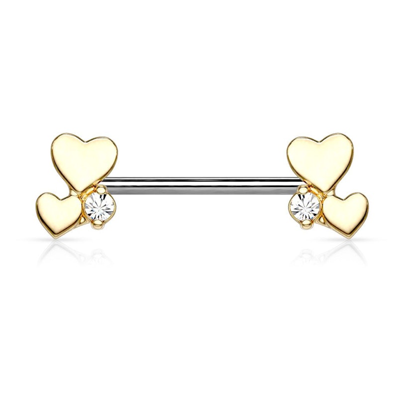 See nibuneet on kahe väikse südamega ja kivikesega mõlemas varda otsas, mis on valmistatud kirurgilisest terasest. See varras on 14 mm pikk ja on jämedusega 1,6 mm. Need suurused sobivad enamikule nibu augustustele.