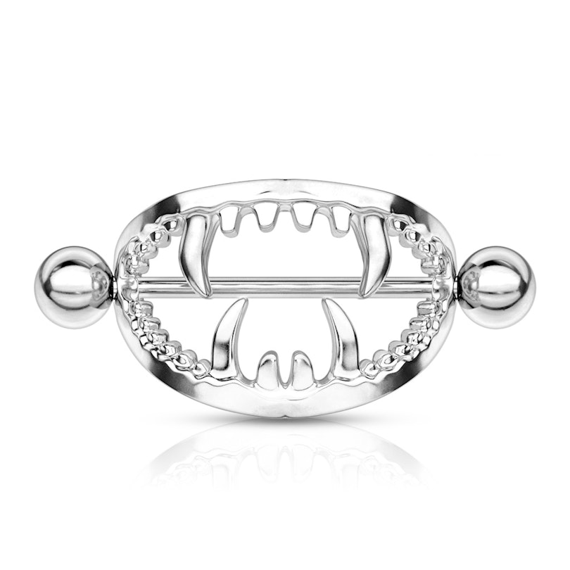 See nibukilp on ahvatlev suutäis. See koosneb kirurgilisest terasvardast, mis ulatub suu ühest servast teise, kuni hammaste ja suurte kihvadeni. Kui paned selle oma nibu-piercingusse, näeb see välja, nagu oleks suu sees nibu.