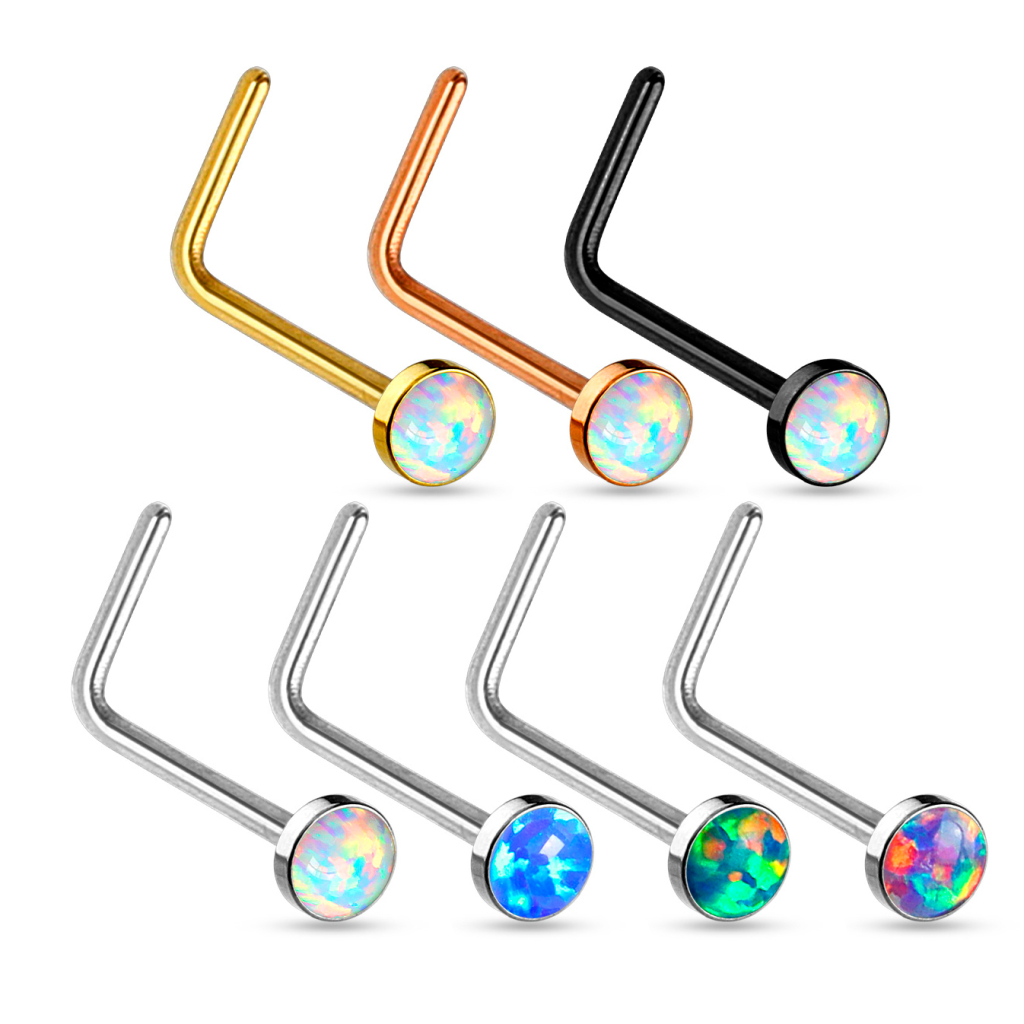 See kaunis ninaehe on saadaval neljas erinevas needivarda värvitoonis, milleks on must, hõbedane, kuldne ja punase kulla tooni. Ehte esiosa kaunistab armas sünteetiline opaal, mis lisab ehtele kindlasti palju glamuuri. Värviliste needivarrastega ehted on saadava vaid valge opaal kivikesega, kuid kui valite hõbedaselt läikiva needivardaga ehte on teie värvivalik suurem ning saate valida ka sinise, rohelise või lilla kivikese.