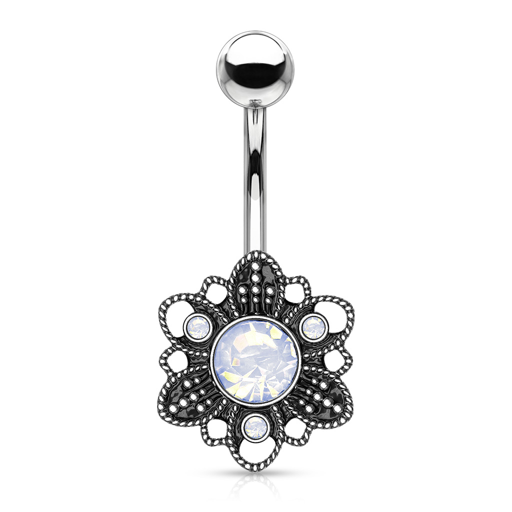 Oksüdeerunud lilleõie ja opaliidiga kaunistatud nabaneet