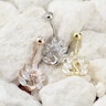 Paabulinnu keha on valmistatud messingist, mida on hiljem kaetud kas roodiumiga või kullaga - see sõltub sinu valitud ehte struktuuri värvist. Ülemine kuul on ehitud bezel lõikega kivikesega, mille värv sobib kokku paabulinnu saba värviga. Kui sa valid metaljat värvi ehte, siis on sul võimalik valida kolme erineva kivikeste värvi vahel (klaar, helesinine ja roosa). Ehte kuldsetel mudelitel on saadaval vaid värvitult klaarid kivid.
