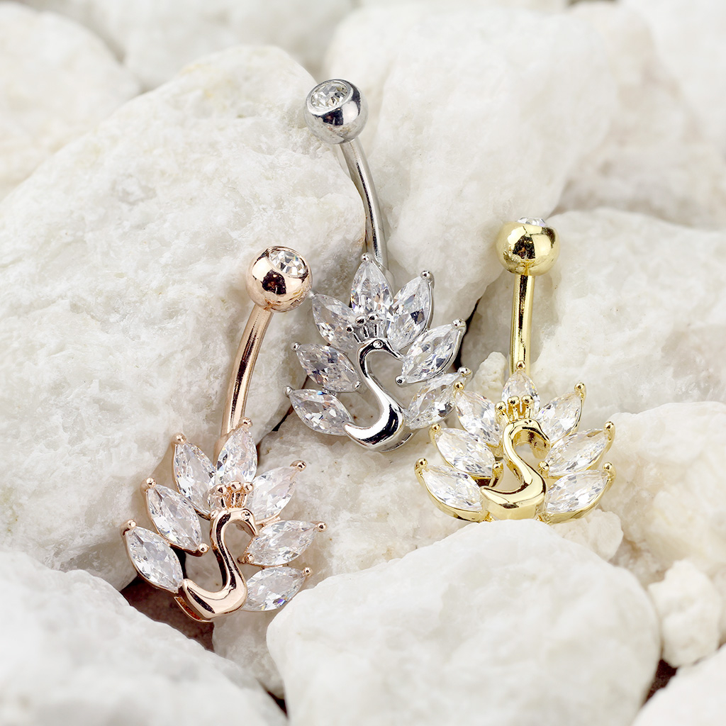Paabulinnu keha on valmistatud messingist, mida on hiljem kaetud kas roodiumiga või kullaga - see sõltub sinu valitud ehte struktuuri värvist. Ülemine kuul on ehitud bezel lõikega kivikesega, mille värv sobib kokku paabulinnu saba värviga. Kui sa valid metaljat värvi ehte, siis on sul võimalik valida kolme erineva kivikeste värvi vahel (klaar, helesinine ja roosa). Ehte kuldsetel mudelitel on saadaval vaid värvitult klaarid kivid.