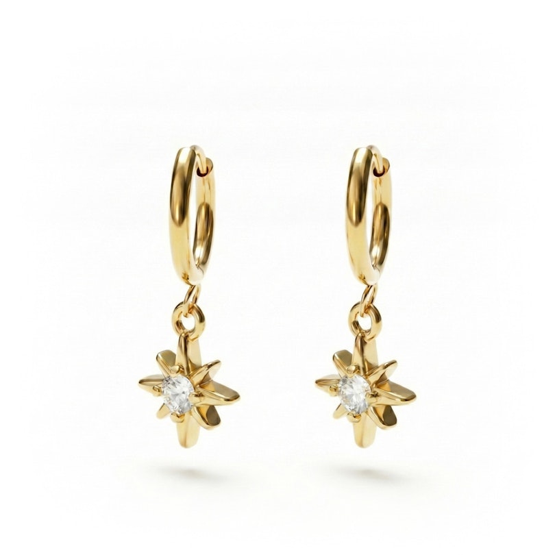 Nimi: Paar huggie rõngaid päikese ripatsiga