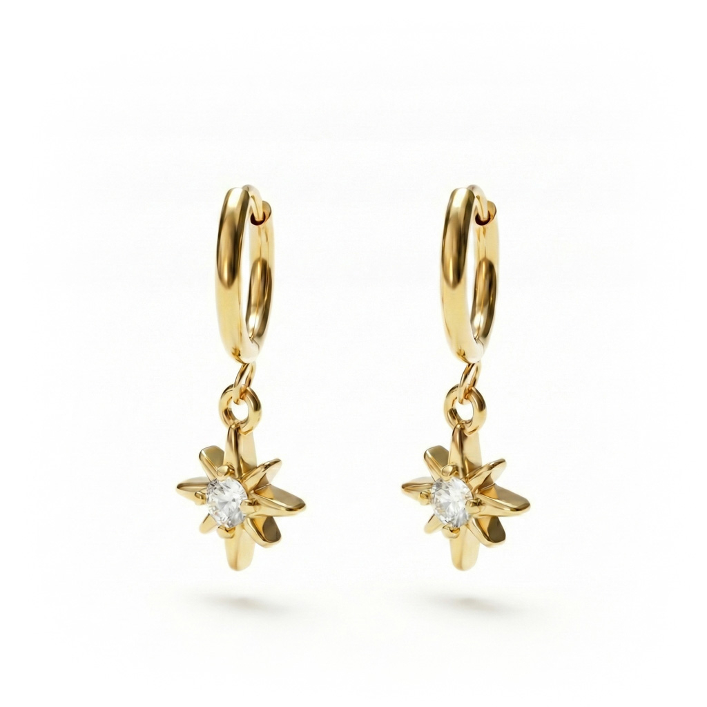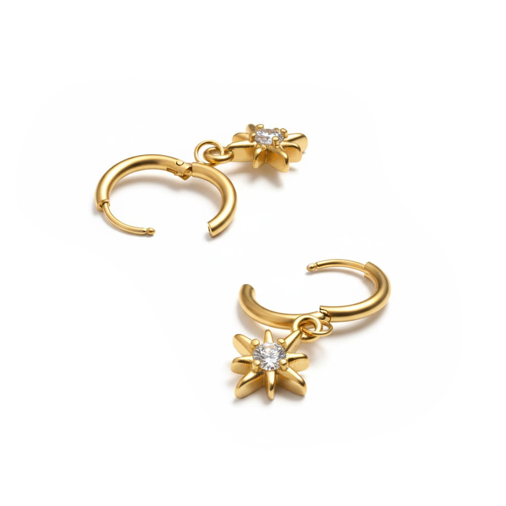 Nimi: Paar huggie rõngaid päikese ripatsiga
