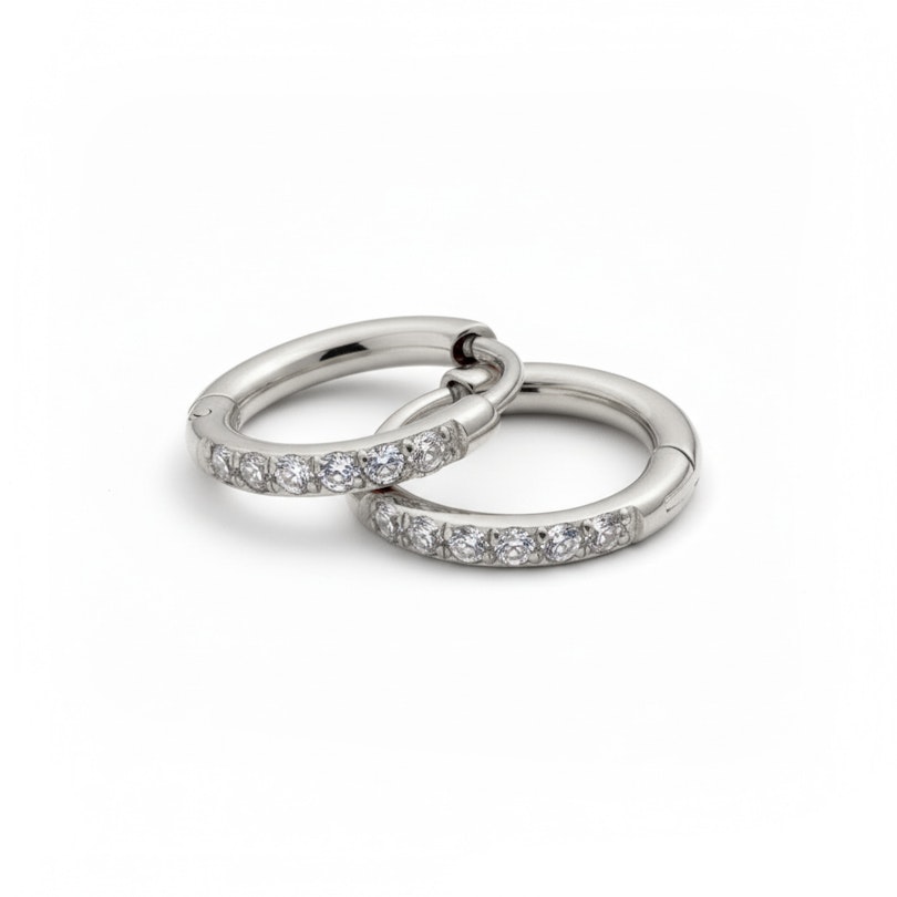 Paar kirurgilisest terasest kivikestega huggie rõngaid