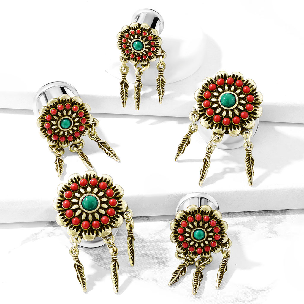 Plug on tehtud kirurgilisest terasest ja seda on valikus mitu suurust. Kõige väiksem mudel on 6 mm ning kõige suurem 16 mm. Esiküljel olev lillekaunistus on valmistatud kullaga kaetud messingust, mis on antiikse välimusega.