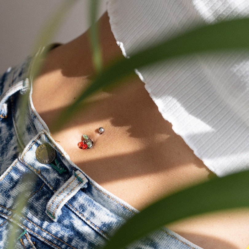 Kellele ei meeldiks imemaitsvad magusad kirsid? Nüüd saad seda fantastilist ehet kanda oma kõhu peal. See on valmistatud kirurgilisest terasest ja kaunistatud paari punaste kirssidega. Nende küljes on kaks rohelist lehte. Nii kirsid kui ka lehed on moodustunud ilusatest värvitud punastest ja rohelistest kivikestest. Sellel needil ei ole ripatsit, sest kirsid on alumise kuulikese osa. Seega on seda väga mugav kanda igapäevaselt, sest ei ole häirivat või riidesse takerduvat ripatsit.