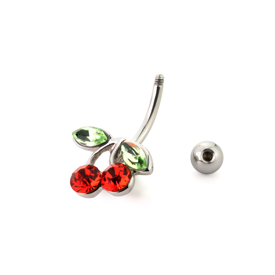 Kellele ei meeldiks imemaitsvad magusad kirsid? Nüüd saad seda fantastilist ehet kanda oma kõhu peal. See on valmistatud kirurgilisest terasest ja kaunistatud paari punaste kirssidega. Nende küljes on kaks rohelist lehte. Nii kirsid kui ka lehed on moodustunud ilusatest värvitud punastest ja rohelistest kivikestest. Sellel needil ei ole ripatsit, sest kirsid on alumise kuulikese osa. Seega on seda väga mugav kanda igapäevaselt, sest ei ole häirivat või riidesse takerduvat ripatsit.