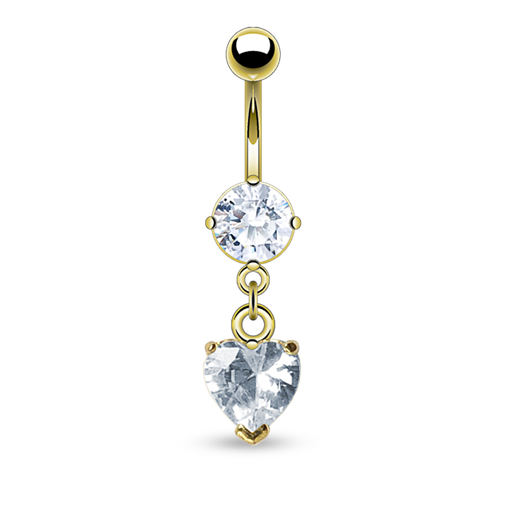 Kullatud nabaneet südamekujulise kivikesega ripatsiga