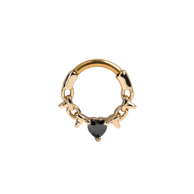 Sellel ettepoole suunatud rõngal on okastraadist disain, mille keskel on must südamekujuline kalliskivi. Liigendiga disain teeb ehte neeti kinnitamise väga lihtsaks.