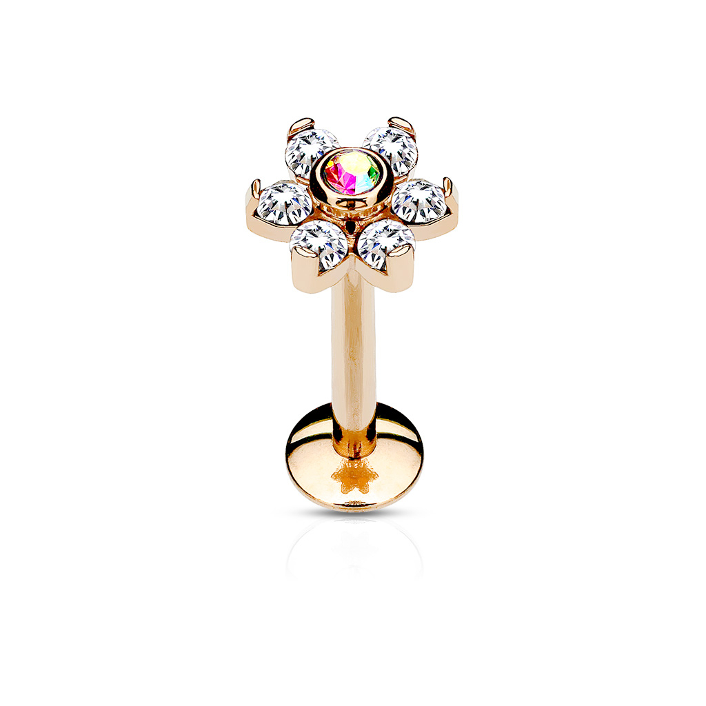 Sisekeermega labret neet kaunistatud lillega-Roosa kuld-Virmaliste tooni