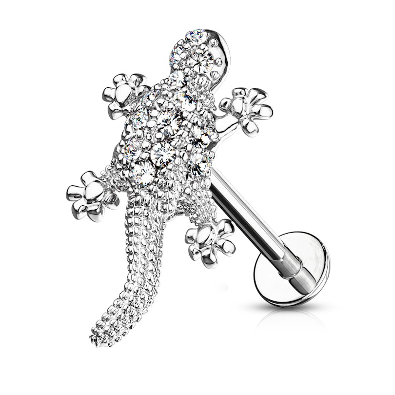 Sisekeermega labret neet kivikestega kaunistatud sisalikuga