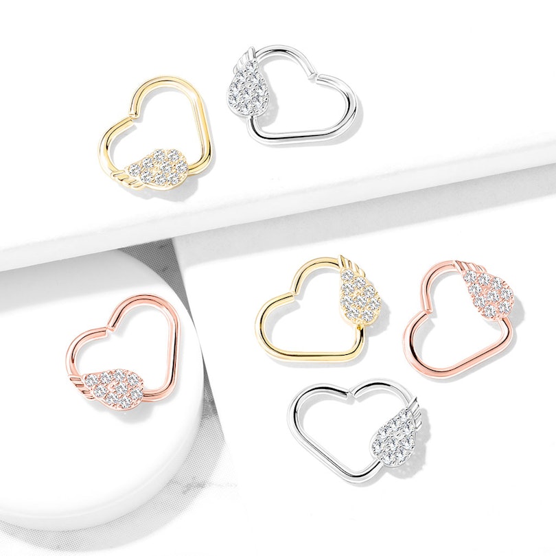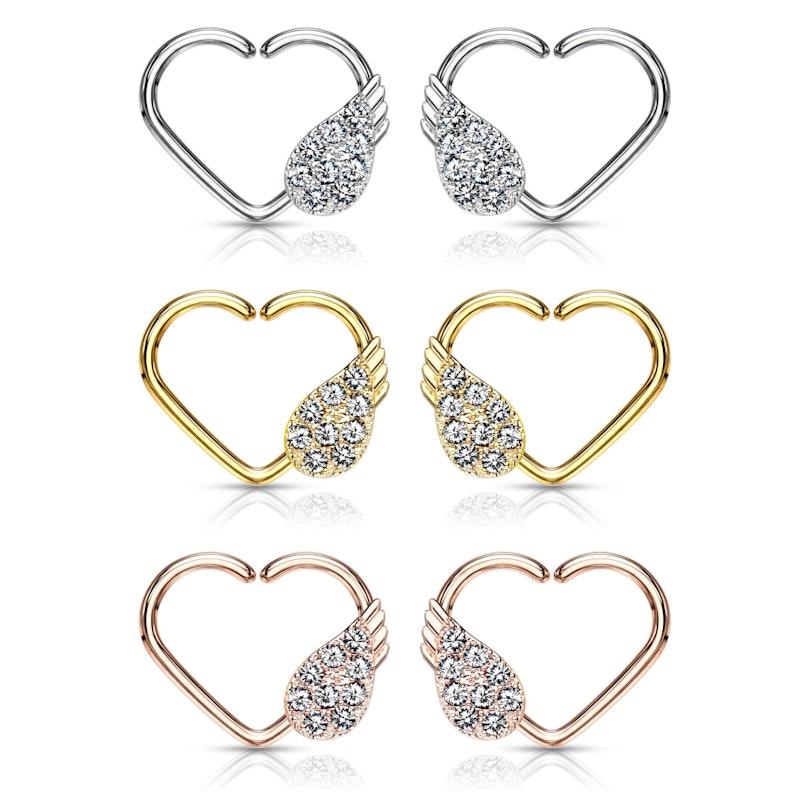 Ühel südame küljel on väike inglitiib, mis on kaetud pisikeste läbipaistvate kivikestega. Kui valid parempoolse kõrva ehte, jääb tiib paremale poole ja vastupidi. See tähendab, et mõlema kõrva jaoks ei saa samat ehet kasutada. Saab, kuid siis jääb tiib tahapoole ja ehe ei olnud selliseks disainitud. Südame sisemised mõõdud on 11 mm laiust ja 8 mm kõrgust. Süda ja tiib on hõbedasel mudelil kaetud plaatinaga ja mõlemal kuldsel mudelil 14-karaadise kullaga.