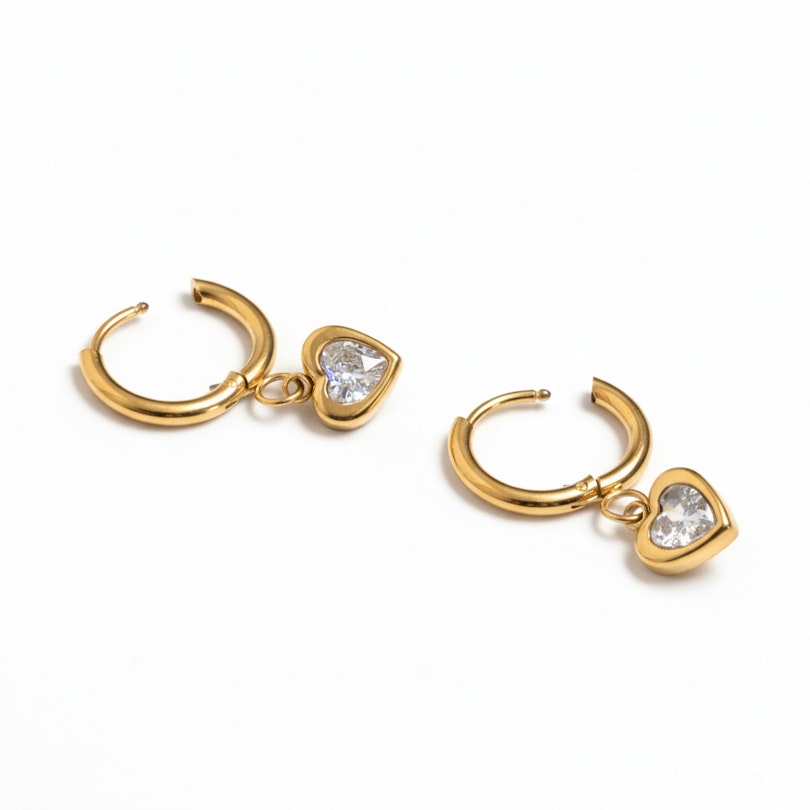 Südameripatsiga rõngaste paar lisab su igapäeva välimusele mängulisust. Mõlenal rõngal on väike südameke, mis liigub koos sinuga. Liigendiga kinnitusega on neid lihtne sisestada ja ära võtta, nii et need sobivad hästi päevaplaanideks, mis muutuvad õhtusteks. Saadaval kuldses ja hõbedas toonis.