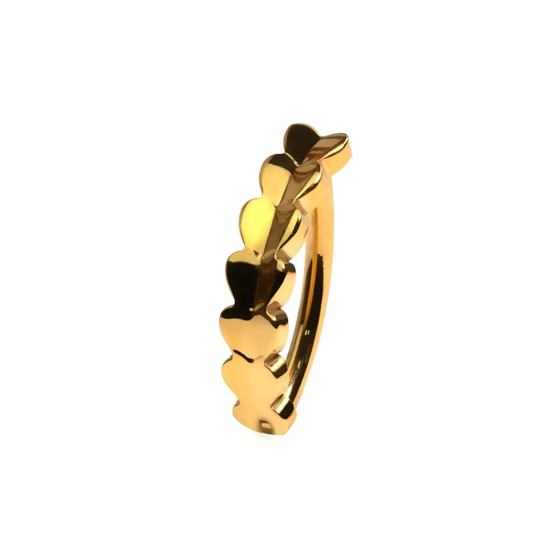 See stiilne nabaklikker on valmistatud implantaadi kvaliteediga titaanist, mis tähendab, et ehe on allergiavaba ning sobilik tundlikule nahale. Ehtel on armas südamemuster mööda ehte esiosa ning see sulgub liigendiga (hinge), mistõttu on ehet väga lihtne augustusse sisestada ja kinnitada.