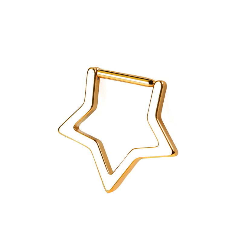 See tähekujuline titaanist klikker rõngas sobib ideaalselt erinevatesse neetidesse. Näiteks see näeks hea välja septum, helix, kõrvalesta või rook needis. Valmistatud vastupidavast titaanist on see veekindel, sobib tundlikule nahale ning loodud kestma. Tänu liigendiga avausele on ehet lihtne augustusse sisestada. Ehe on tegelikult õõnes, mis annab ehtele kopsaka (chunky) välimuse, ent olles väga kerge ja mugav kanda.