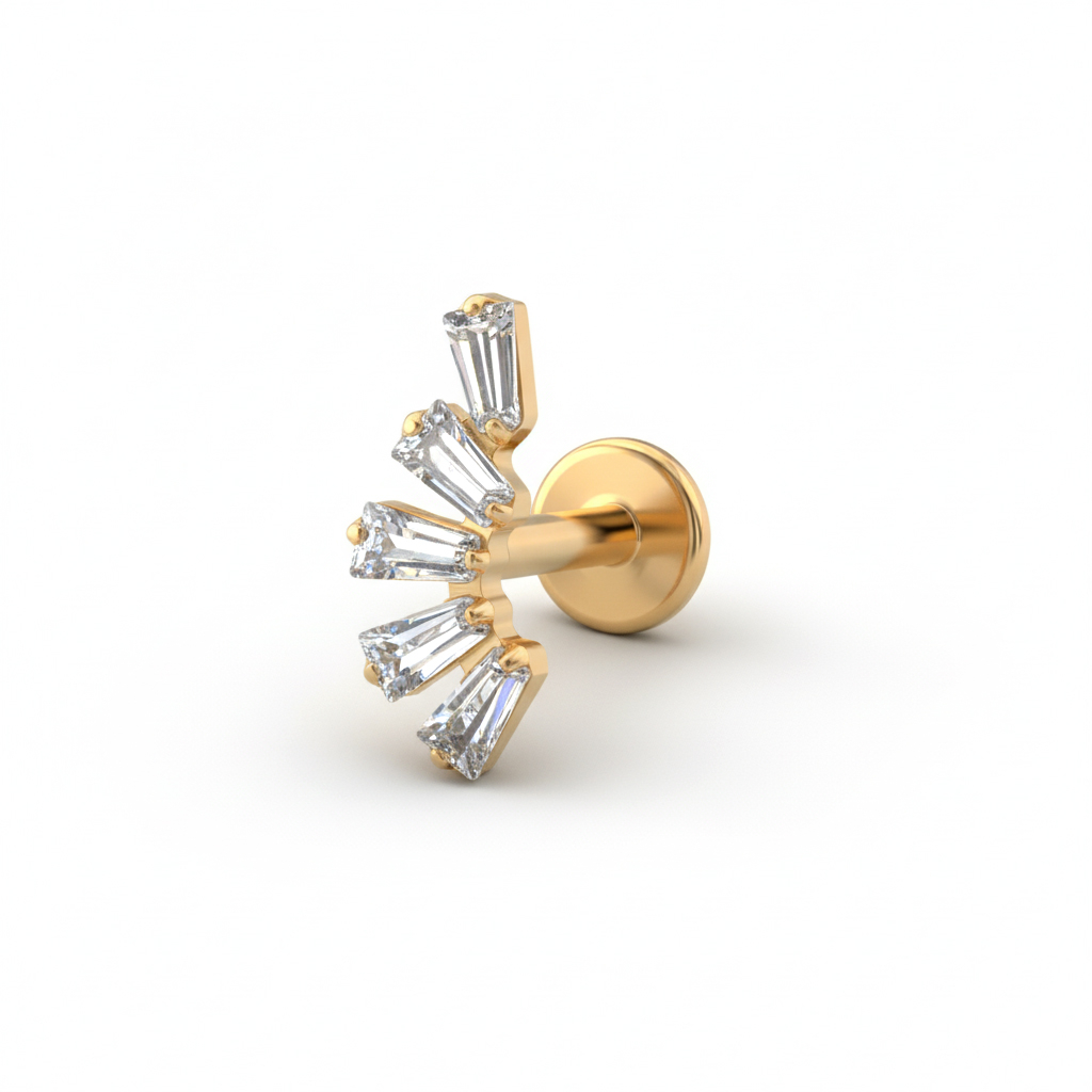 Titaanist labret baguette-lõikega kividega on loodud hetkedeks, mis vajavad struktuuri. Baguette-lõikega kivid on puhtalt ja teravalt reas, asetudes kenasti kõrval, et luua tasakaalustatud välimus.