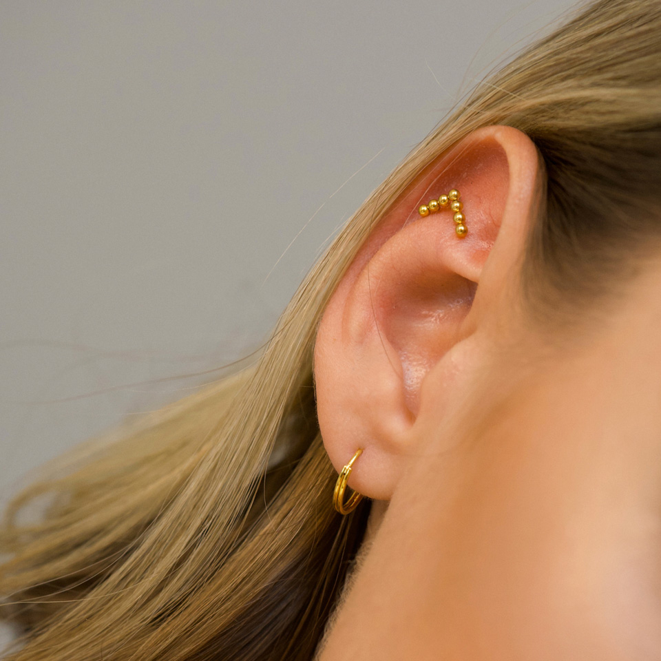 Titaanist labret koos helmestega chevron pealsega on trendikas disain. Chevroni disain on valmistatud 7 helmest, millest igaüks on 2 mm suurune. Mõlemad küljed on 7,8 mm. See on saadaval nii kuldses kui ka hõbedases värvitoonis.