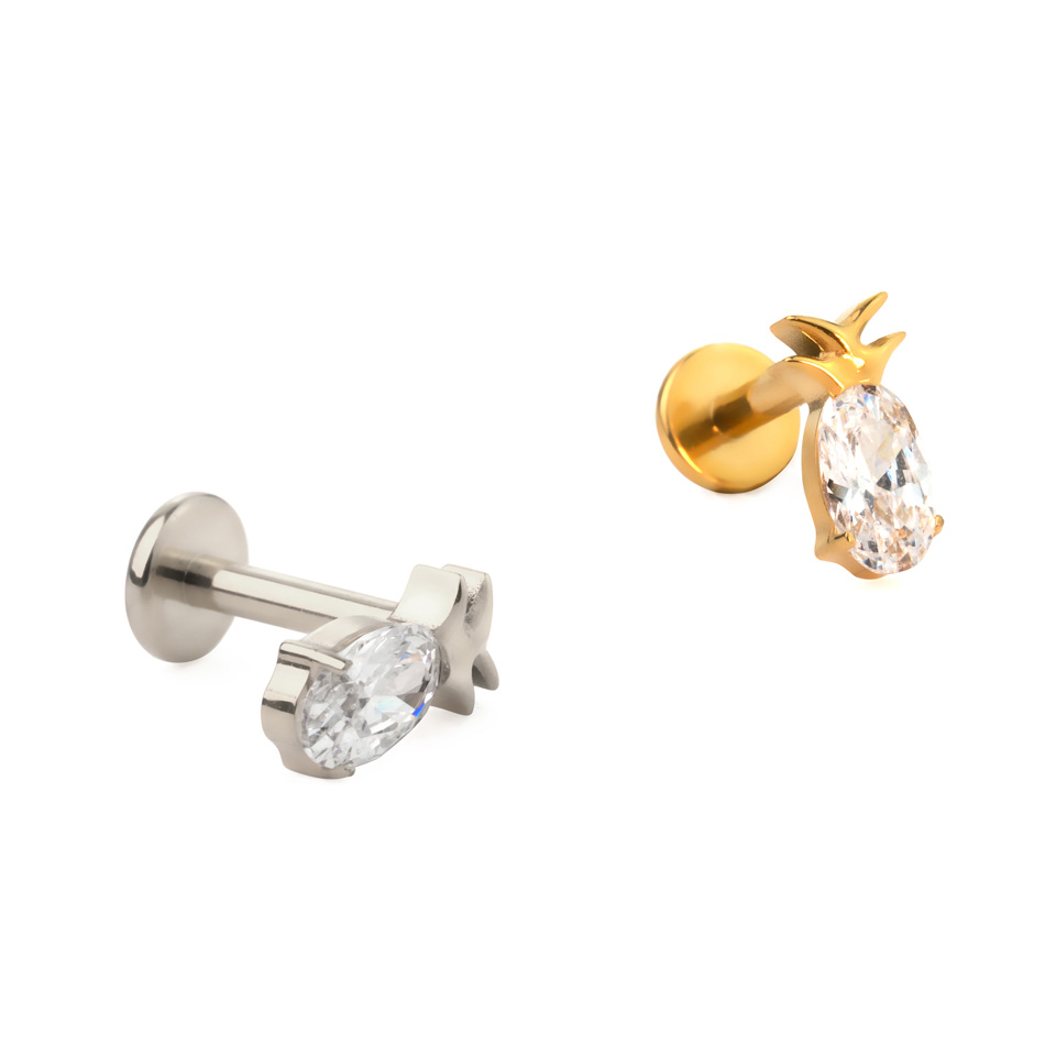 See veetlev titaanist labret on täiesti troopiline oma võluva ananassikujundusega. See armas ese on pikitud cubic zirkooniumkividega, mis püüab su pilku.