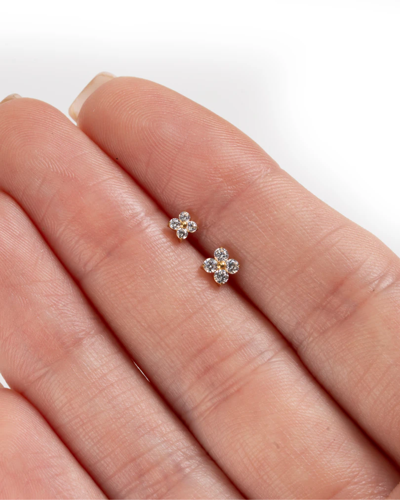 Titaanist miniatuurne lillelabret lisab pehme lilledetaili, milles pisikesed kivikesed on seatud õiekujuliselt. Kivid on kinnitatud prongidega ja istuvad naha lähedal, andes detaili ilma raskusteta. Saadaval kuldses ja hõbedas toonis ning kahes suuruses: väiksem on diskreetne ja suurem annab natuke rohkem isikupära. Kandes koos loovad nad lihtsa, kihilise ehete kombo, mis tundub läbimõeldud.