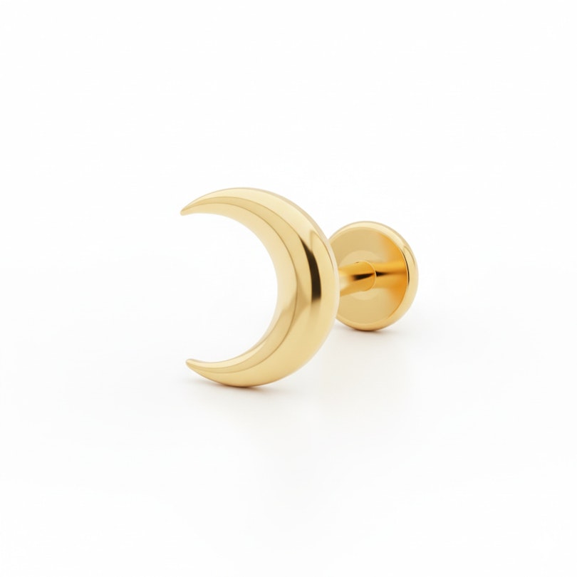 Poolkuuga titaanist labret on loodud hilisõhtuteks ja varahommikuteks, vaikseteks vahehetkedeks, mil kõik tundub isiklikum. Ehte poolkuu kuju, saadaval kuldse või hõbeda viimistlusena, annab minimaalset ja tasakaalustatud energiat.