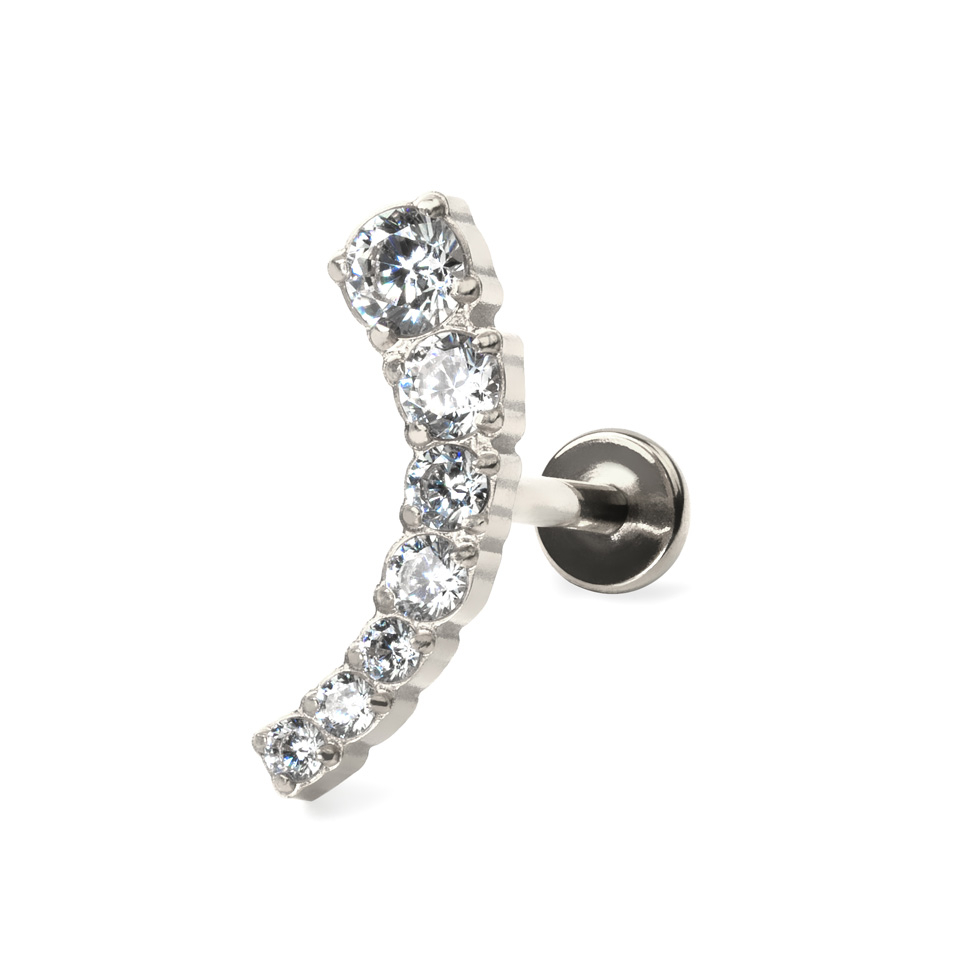 See kütkestav titaanist push-in labret, millel on kumer pealne 7 lihvitud läbipaistva kiviga, on saadaval kahes värvitoonis, kuldne ja hõbedane, ning on saadaval kahes pikkuses, 6 mm ja 8 mm, paksusega 1,2 mm.