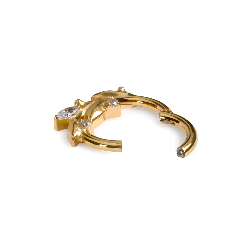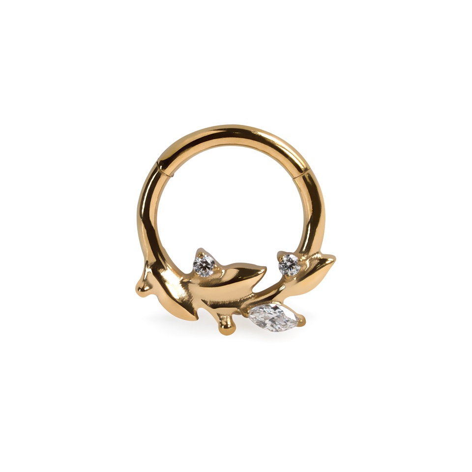 See kaunis delikaatsete lehtedega rõngas on valmistatud titaanist, mis tähendab, et see sobib tundlikule nahale. Tänu liigendiga mehhanismile on ehet väga lihtne neeti kinnitada.