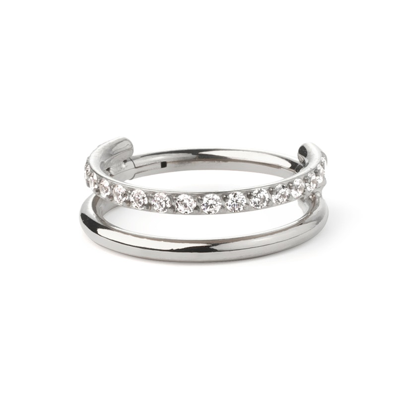 See ebatavaline ehe näeb välja nagu kaks rõngast, millest üks on väikeste kalliskivide reaga ja teine ilma. Need kaks rõngast on ühendatud ühe keermega, mis läheb sinu needi sisse. Titaanist valmistatud rõngas on hüpoallergeenne ja tõeliselt vastupidav. See kaunis rõngas on saadaval eri läbimõõtudega ning kulla ja hõbedana ja sobib erinevate kõrvaneetide jaoks ning on glamuurne lisa sinu kõrva, ükskõik, kus seda kanda soovid.