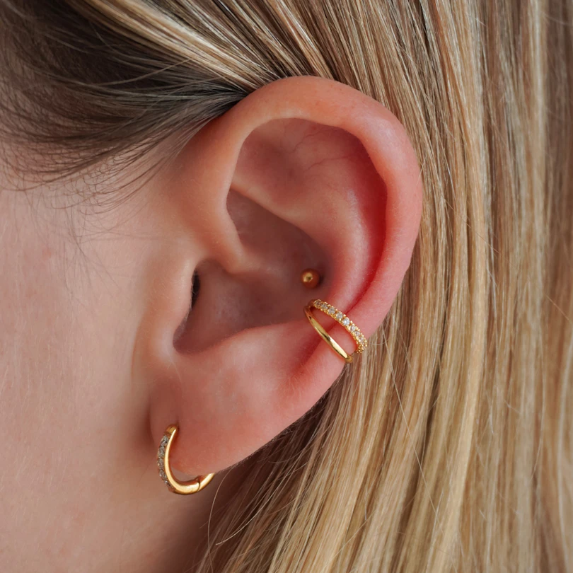 Topelt kõrvamansett CZ kividega on lihtne viis lisada detaili ilma augustamata. Disainitud mugavalt kõrval istuma, loob see kahe needi mulje, olles samas piisavalt mugav igapäevaseks kandmiseks. Väikesed kuubitsirkooniumi kivid on kinnitatud prongidega, lisades just parajalt sära. Saadaval kuldses ja hõbedas toonis.
