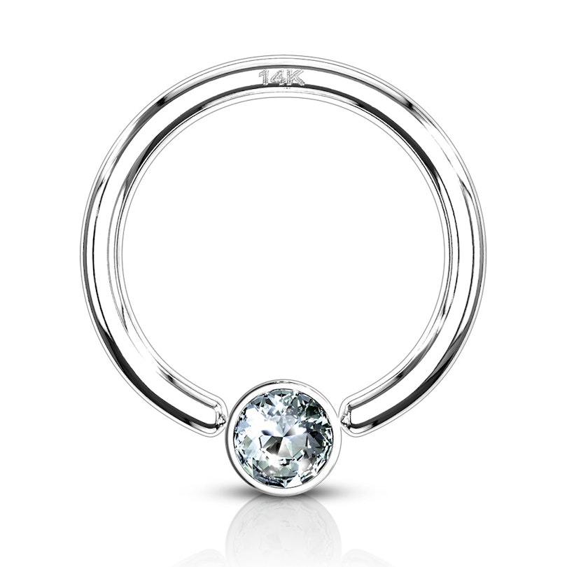 Nii kaunis 14-karaadisest kullast rõngas, mille kuuli kaunistab säravalt klaar kivike! Siinpuhul sa saad mitte ainult kõrgkvaliteetse toote, mille materjaliks on puhtaimast puhtam kuld, vaid ka särava lisandi, mis annab ehtele juurde veidi naiselikku elegantsi. Selle rõnga varda läbimõõt on 1,2 mm ning diameetriks on 8 mm, seega saab seda kasutada kõikides kohtades, kus antud suurus klapib sinu neediauguga. Tavaliselt on kuuliga rõngad kasutatavad paljude neetide puhul, nii et siin on piiriks vaid kujutlusvõime rikkus. Kuuli suuruseks on 3 mm.