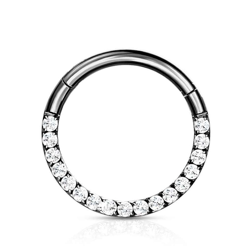 Rõnga esiosas on rida sädelevaid kive. Kivide asukohta peaksid kaaluma, sõltuvalt sellest, millise neediaugu jaoks rõngast soovid. Näiteks on kivid ideaalselt paigutatud septumi või daith-piercingi jaoks, kuid ninasõõrme jaoks võiks eelistada disaini, mille kivid on suunatud väljapoole.