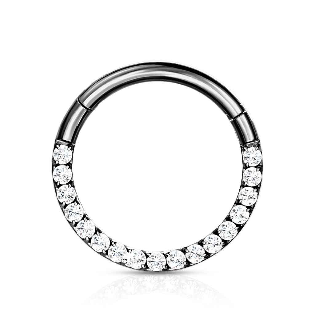 Rõnga esiosas on rida sädelevaid kive. Kivide asukohta peaksid kaaluma, sõltuvalt sellest, millise neediaugu jaoks rõngast soovid. Näiteks on kivid ideaalselt paigutatud septumi või daith-piercingi jaoks, kuid ninasõõrme jaoks võiks eelistada disaini, mille kivid on suunatud väljapoole.