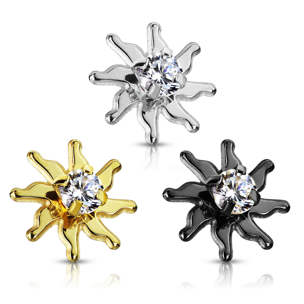 Nimi: Päikese kujuline kivikesega dermal kaunistus.