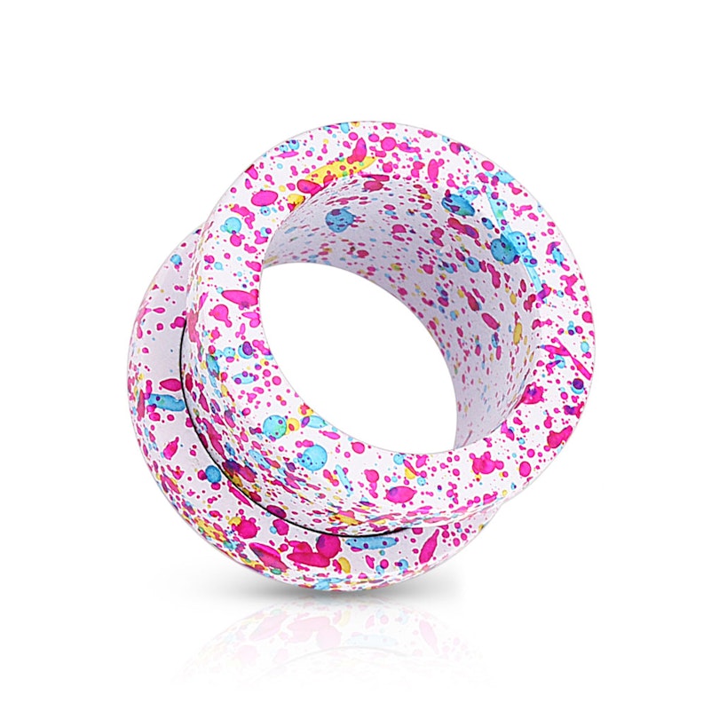Siin on tunnel just sulle, kes sa armastad vigureid ning värve oma venituste ehetes. See kaunis tunnel on toodetud kirurgilisest terasest ning on saadaval paljudes erinevates värvides ning suurustes, mis on olemas vahemikus 3mm kuni 16mm diameetris. See vinge tunnel on kujundatud nii, et see näeb välja nagu oleks erinevatesse värvidesse kastetud pintslit selle kohal korralikult raputatud. Kaunid värvipritsmed on üksteisega kokku sobivates värvides.