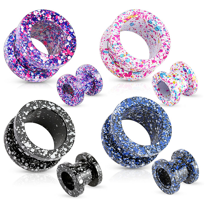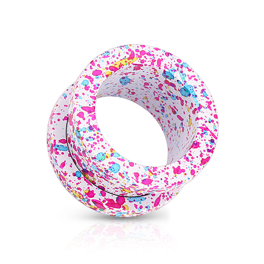 Siin on tunnel just sulle, kes sa armastad vigureid ning värve oma venituste ehetes. See kaunis tunnel on toodetud kirurgilisest terasest ning on saadaval paljudes erinevates värvides ning suurustes, mis on olemas vahemikus 3mm kuni 16mm diameetris. See vinge tunnel on kujundatud nii, et see näeb välja nagu oleks erinevatesse värvidesse kastetud pintslit selle kohal korralikult raputatud. Kaunid värvipritsmed on üksteisega kokku sobivates värvides.
