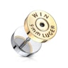 Siit leiad laheda padrunit meenutava disainiga võlts plug ehte. Miks just võlts plug? Seda seetõttu, et neet meenutab plug ehet, mida kannavad inimesed, kellel on kõrvavenitus. Sul aga ei ole vaja muud kui 1,2 mm suurust neediauku, millest needi varras läbi pista.