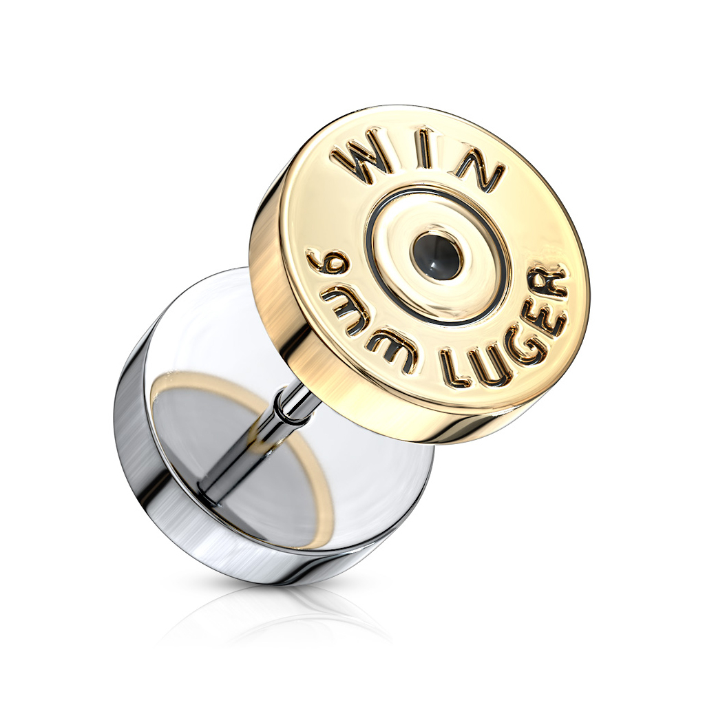 Siit leiad laheda padrunit meenutava disainiga võlts plug ehte. Miks just võlts plug? Seda seetõttu, et neet meenutab plug ehet, mida kannavad inimesed, kellel on kõrvavenitus. Sul aga ei ole vaja muud kui 1,2 mm suurust neediauku, millest needi varras läbi pista.